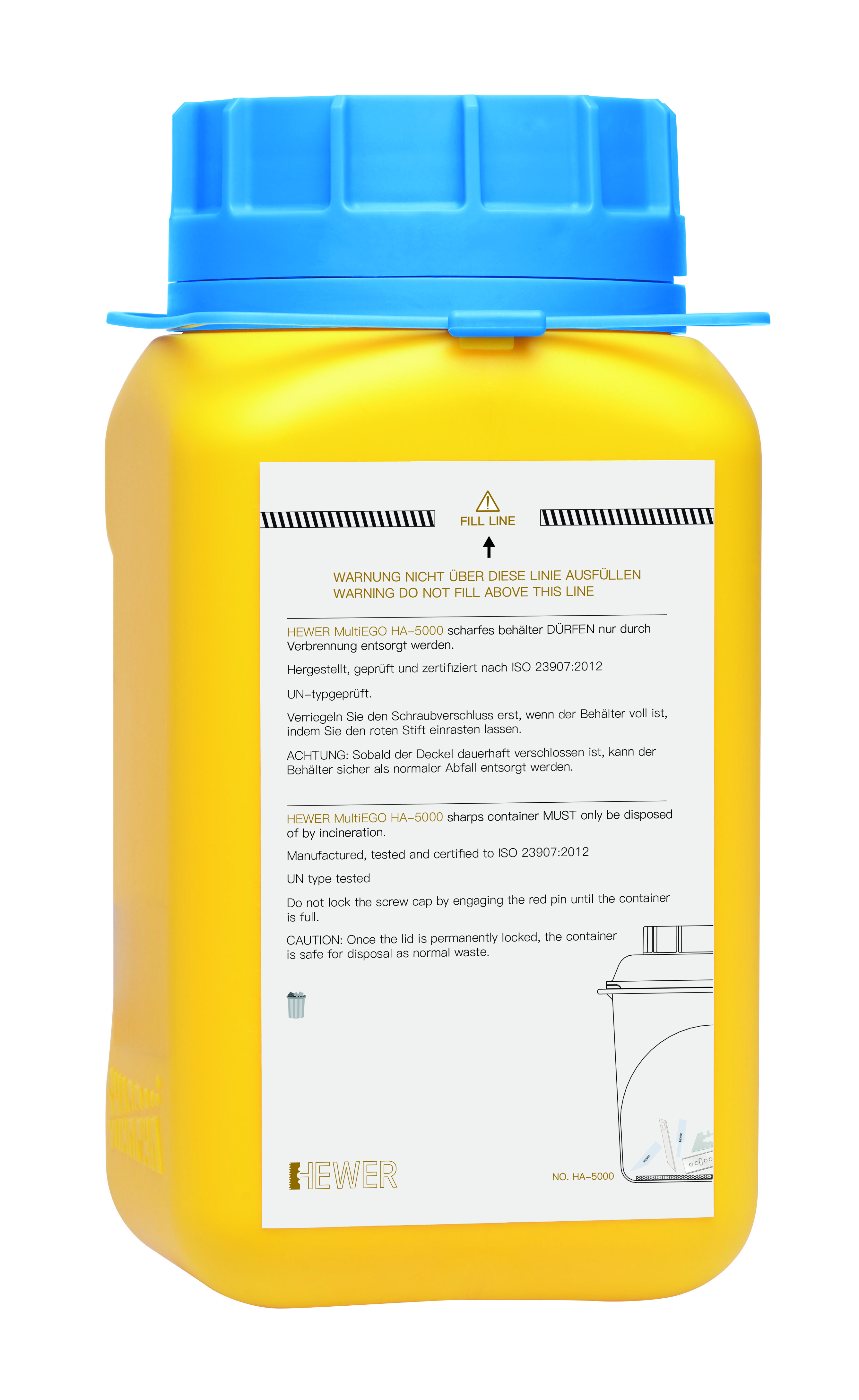 HEWER MultiEGO HA-5000 舊刀片回收罐專為安全、徹底地處理用過的刀片而設(shè)計。 這些容器已通過 ISO 23907:2012 認證,并根據(jù)聯(lián)合國關(guān)于危險貨物運輸?shù)慕ㄗh第 9 章 UN3291和NOS 的規(guī)定進行測試和認證。